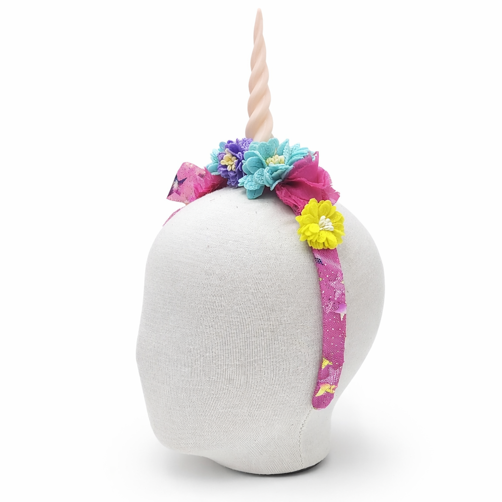 Cintillo cuerno de unicornio, Cintillo con flores, accesorio para ninas